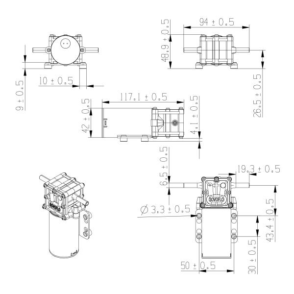 | Model | Hosing Port | Rated Volts (VDC) | Rated Amps (A) | Open Flow (L/min) | Noise @ 30CM (dB) | Dry Suction (m) | Head (m) | Output Pressure (MPA) | Weight (KG) | Duty Cycle |